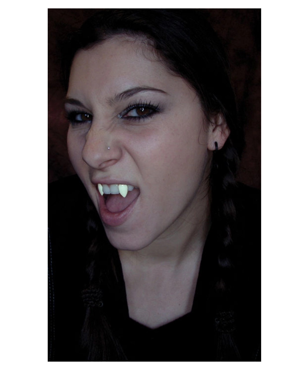 Lange Vampir Eckzähne die im Schwarzlicht leuchten!